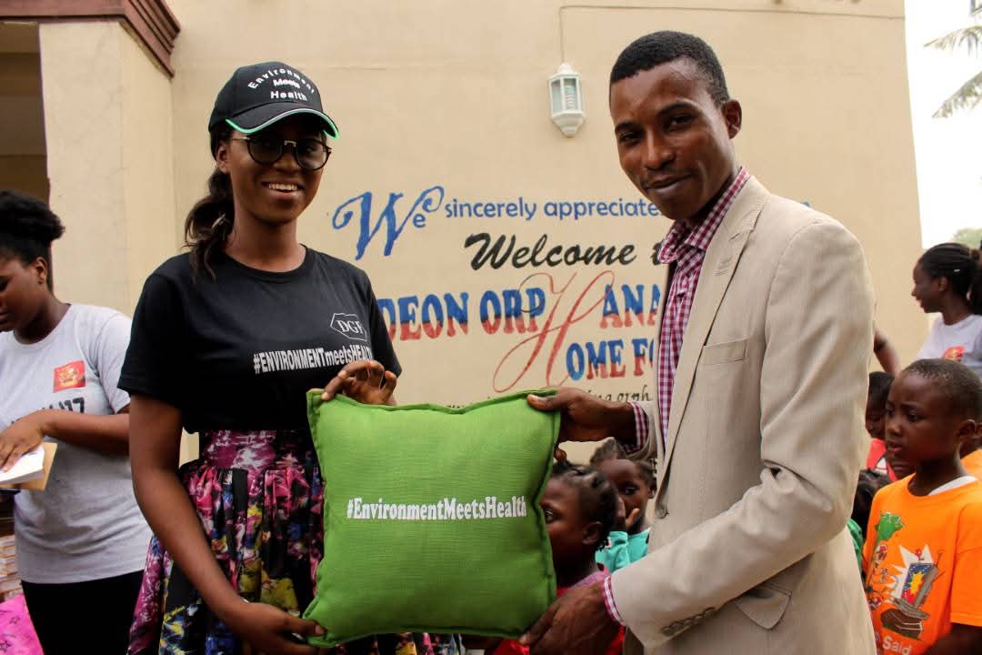 After our first Environment Meets Health launch, our sponsors gifted custom "Environment & Health" pillows to Miss Environment.